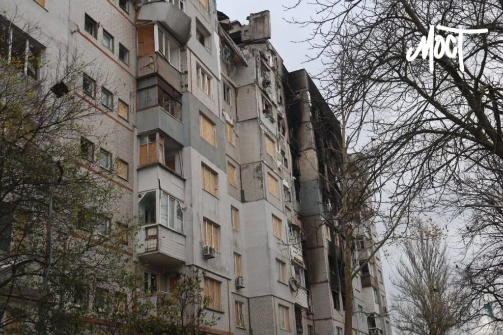 Multi-storey residential buildings in the ‘red zone’ at the corner of Chornomorska and Perekopska streets were damaged as a result of shelling by the Russian army.