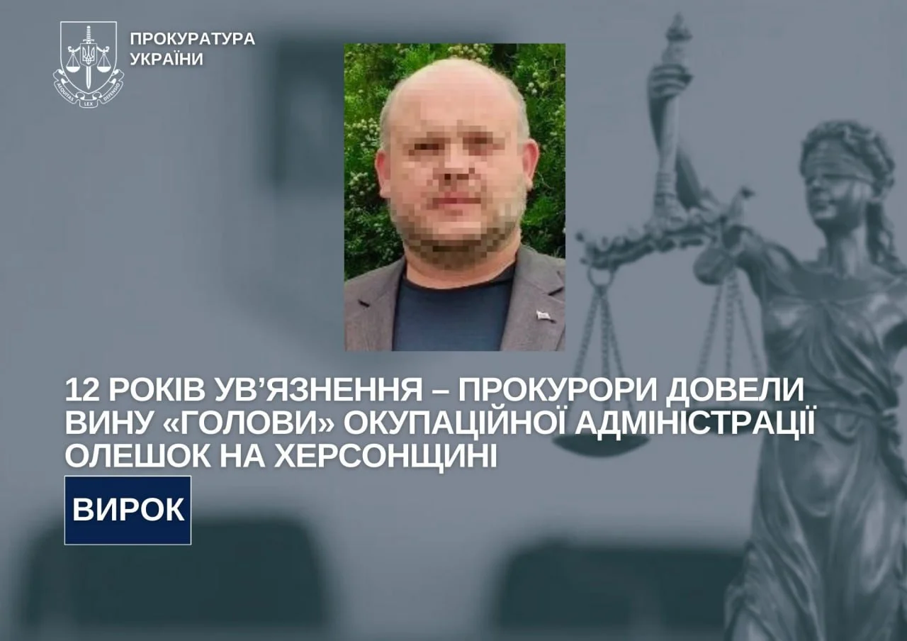 According to the prosecutor’s office, in 2024 Khomenko assumed the so-called post of head of the Oleshky municipal district, created by the occupation authorities on the basis of the illegal council of deputies of Oleshky.