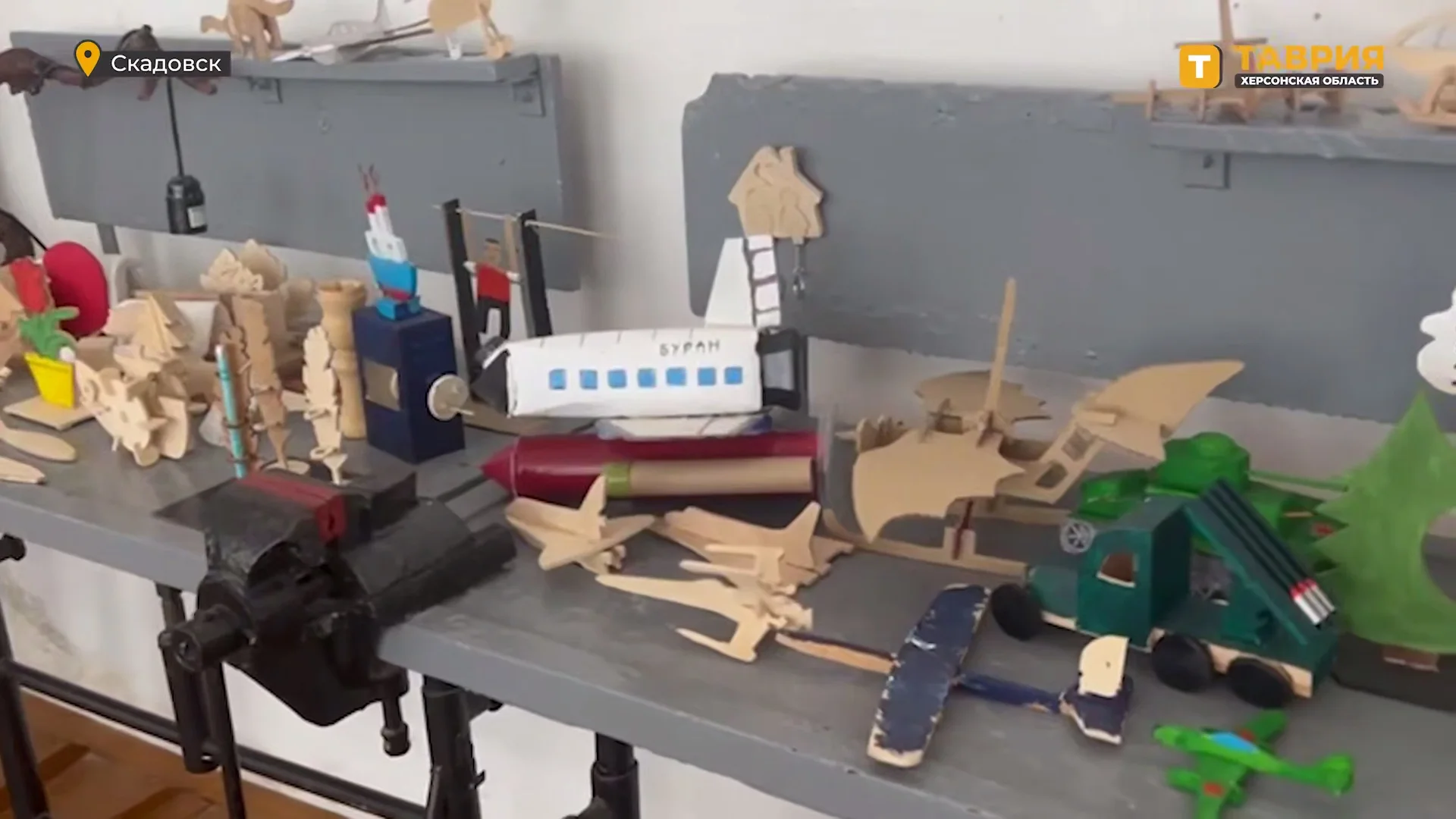 In the video attached to the report, you can see an exhibition of wooden products and painted bench vises.