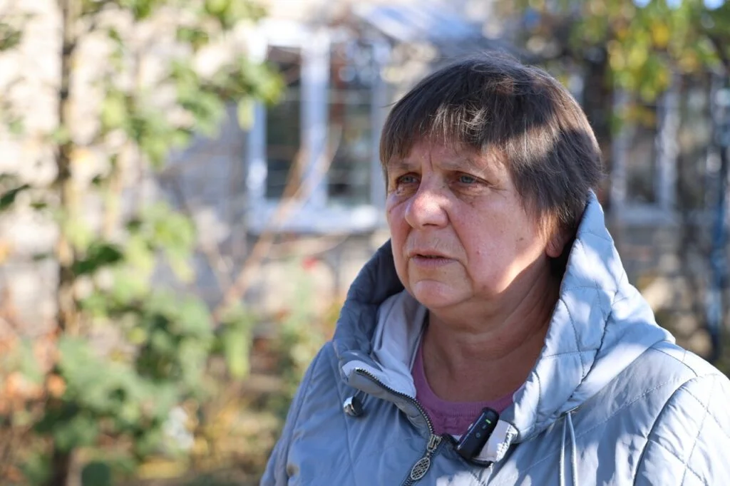 Valentyna Chernenko says that overall there were six impacts on her house during the occupation and fighting – shells, mines.