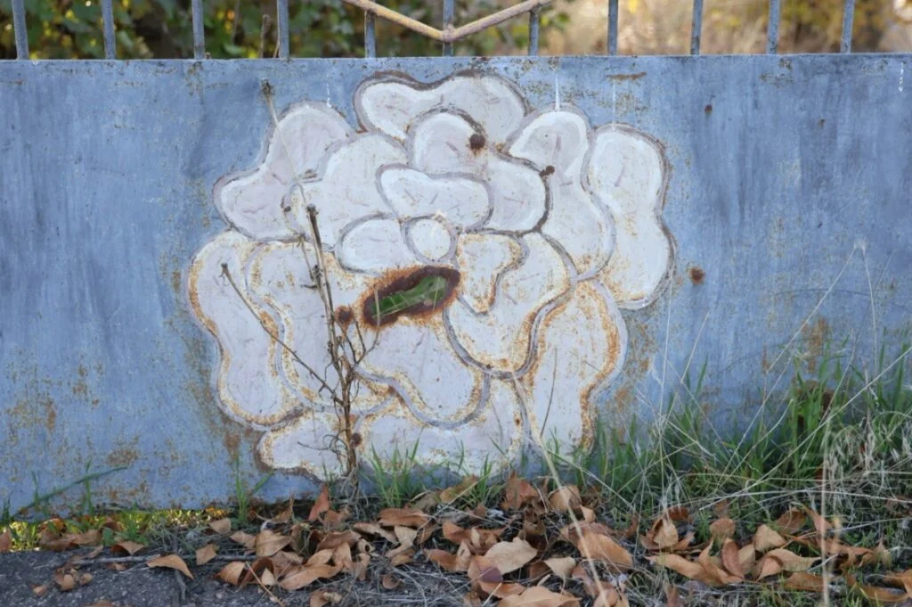 The village lacks beauty. At the exit from the village someone’s gate, decorated with a metal flower, is pierced by a fragment. The house behind the fence is broken and burned; they clearly will not restore it, nor will they repair the metal flower.