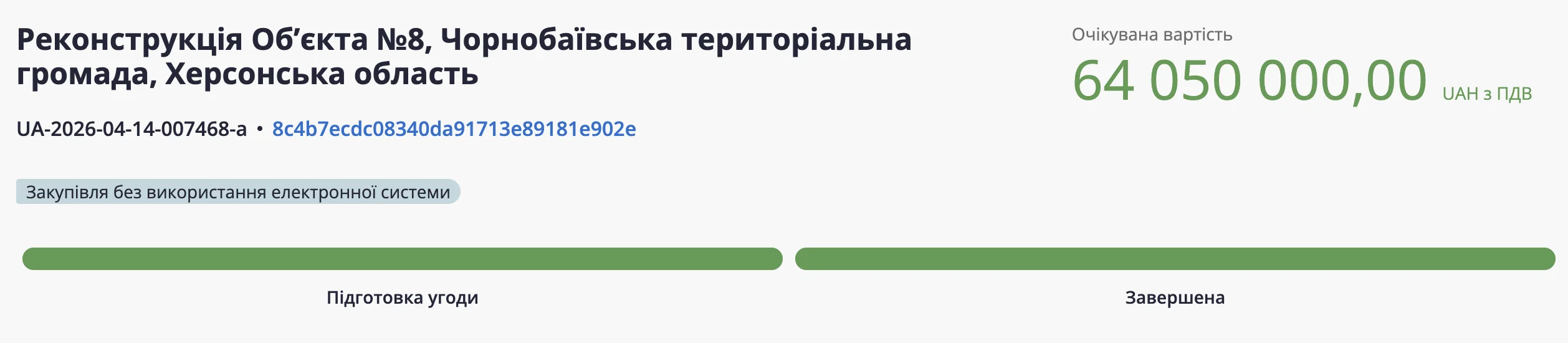 There is currently no access to the contract, because, as stated on Prozorro, it is protected by “wartime confidentiality” and will be published 90 days after the state of martial law is lifted. However, it is known that the works must be completed by March 30, 2027.