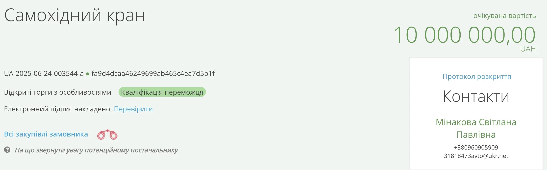 Підприємство планує купити один телескопічний гідравлічний автогідропідйомник, один сідельний тягач, два самоскиди, один гусеничний бульдозер, один напівпричіп-трал та один самохідний кран.