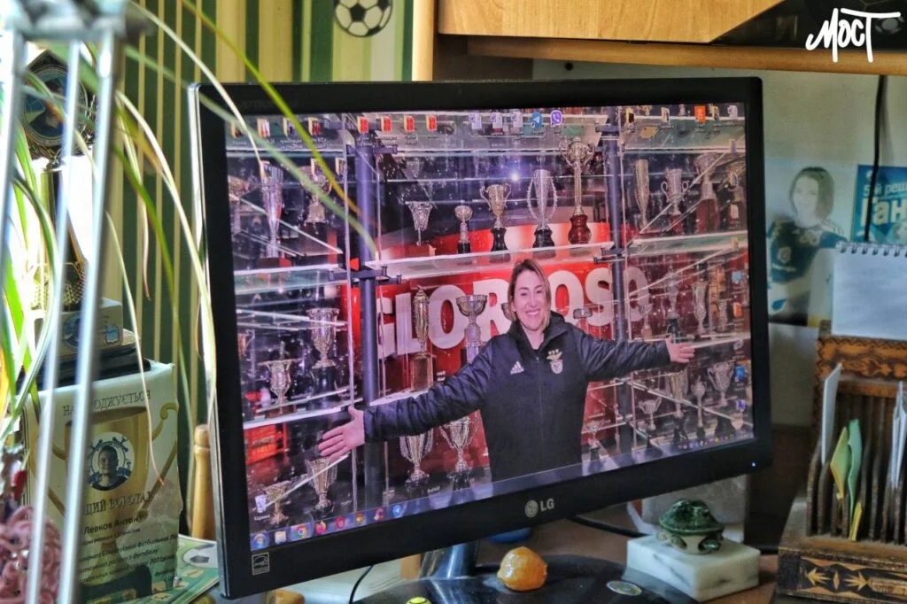 «У команді, – каже Олексій, – її називають, як мене свого часу в «Кристалі» – Бо. Вікторія завершує ігрову кар’єру (їй вже – 39 років), переходить на тренерську роботу. Вона присилає мені мерч «Бенфіки» – футболки, наприклад. Я їх тут дітям дарую. Колись допомагав проводити дитячі футбольні змагання».