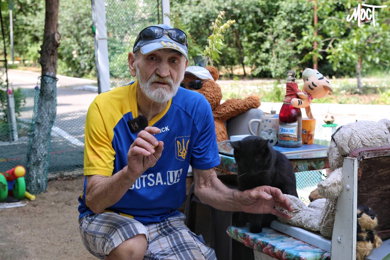 Чоловік каже, що вирішив зробити острівець миру посеред війни, посеред херсонського жахіття: «Десь – війна, а тут повинен бути мир. Бо якщо тут миру не буде, і війна не закінчиться. Я – людина віруюча, і вважаю, що Бог нас бачить, що розуміє, чого ми хочемо, і дасть нам це».