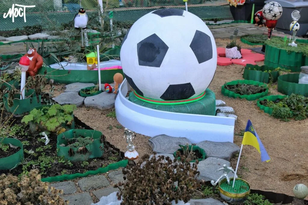 «Арт-об’єкт» у дворі не тільки дбайливо доглядається і у разі потреби ремонтується (зараз треба відновлювати м’яч, у який нетверезий перехожий жбурнув пляшку), а й постійно вдосконалюється.