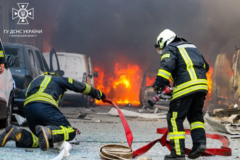 Унаслідок ранкового обстрілу автосервісу в Херсоні загорілась будівля та 7 автомобілів.