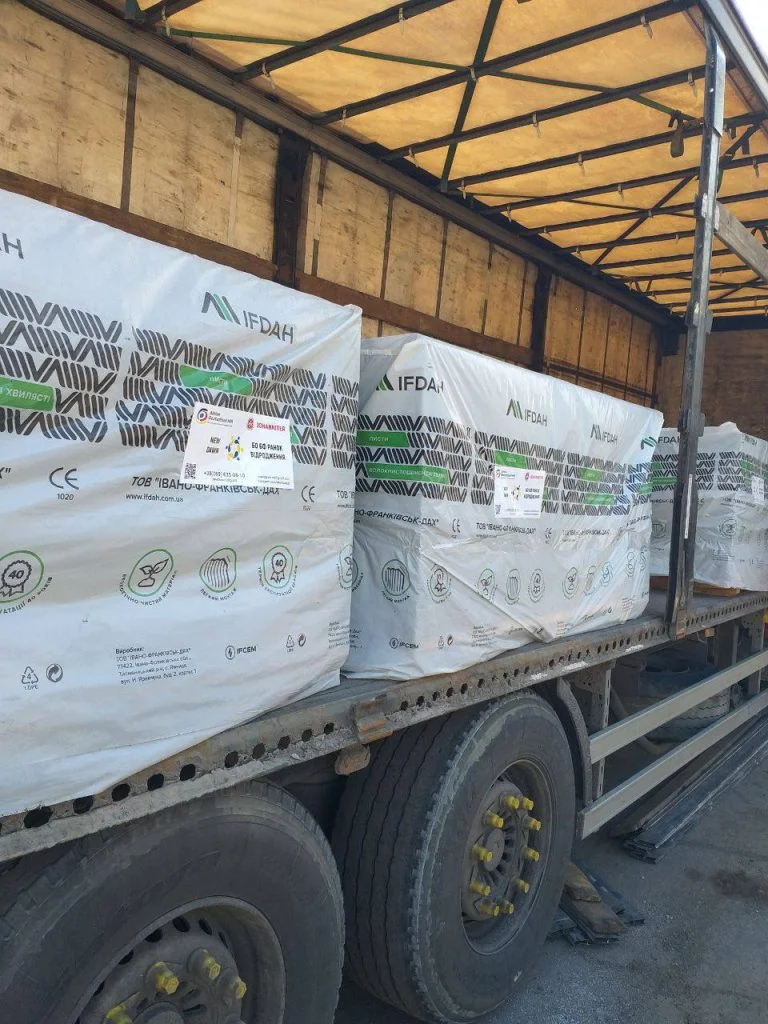Зазначається, що будівельні матеріали підуть на відновлення покрівель будинків, які були пошкоджені російськими обстрілами.