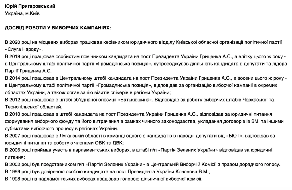 Він працював в десятках штабів – від партії Зелених до Слуги народу. Був довіреною особою кандидатів у Президенти Кононова та Гриценка.
