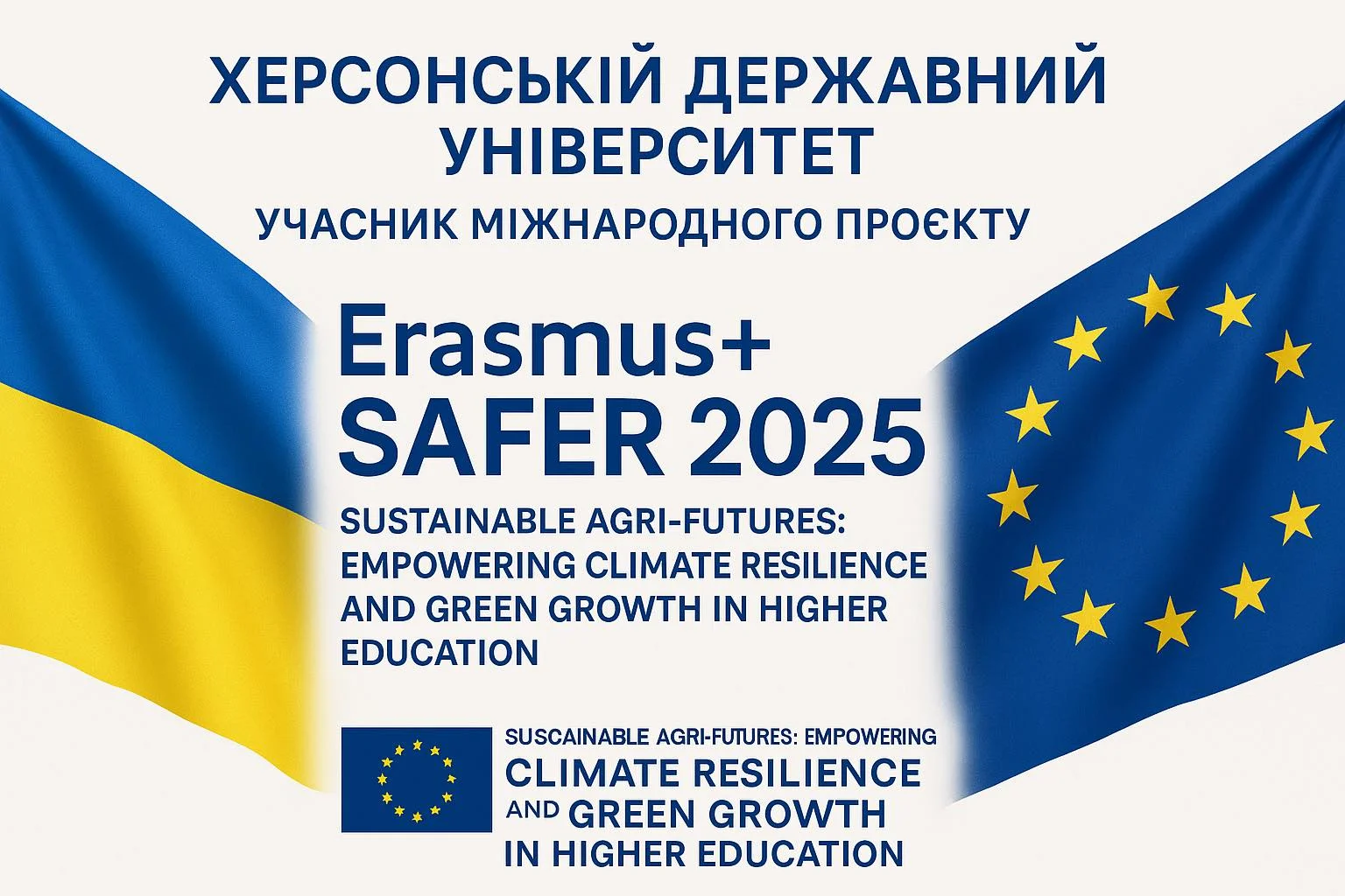 Херсонський державний університет разом із сімома партнерами з різних країн долучився до реалізації проєкту Erasmus+ SAFER — “Sustainable Agri-Futures: Empowering Climate Resilience and Green Growth in Higher Education” («Стале аграрне майбутнє: посилення кліматичної стійкості та зеленого зростання у сфері вищої освіти»).