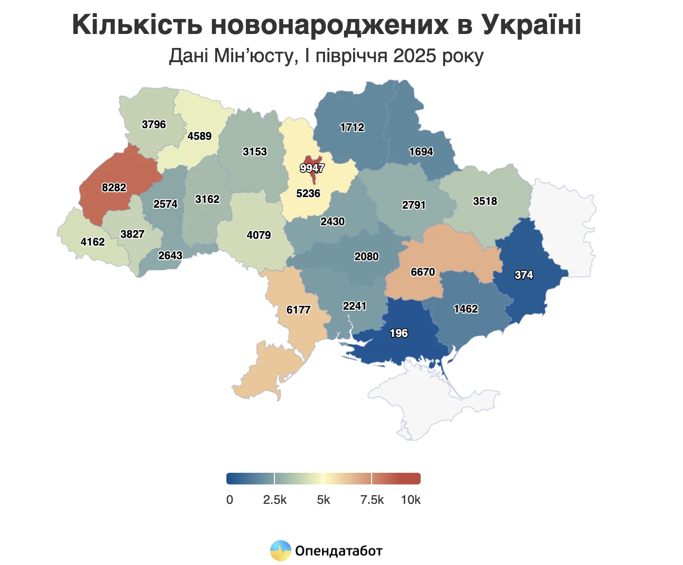 За перші шість місяців 2025 року на Херсонщині народилось 196 дітей. Це найнижчий показник народжуваності серед українських областей, які перебувають під контролем України.