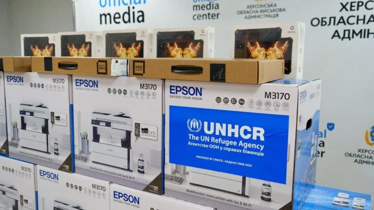 Херсонська область отримала партію ноутбуків, планшетів та професійних принтерів від Управління Верховного комісара ООН у справах біженців.
