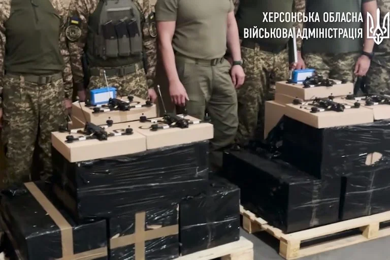 Херсонська область передала українським військовим 2 вантажівки та 100 FPV-дронів.