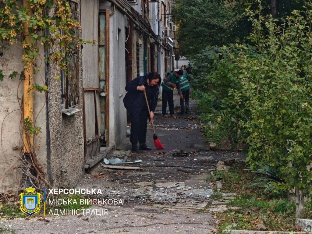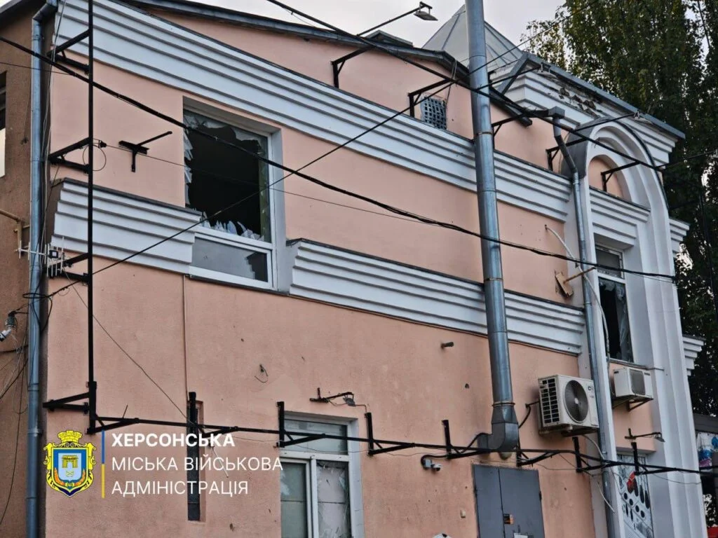Наразі працівники КП “Парки Херсона” ліквідовують наслідків обстрілу, закривають вікна плитами ОСБ, прибирають територію від скла та будівельного сміття.