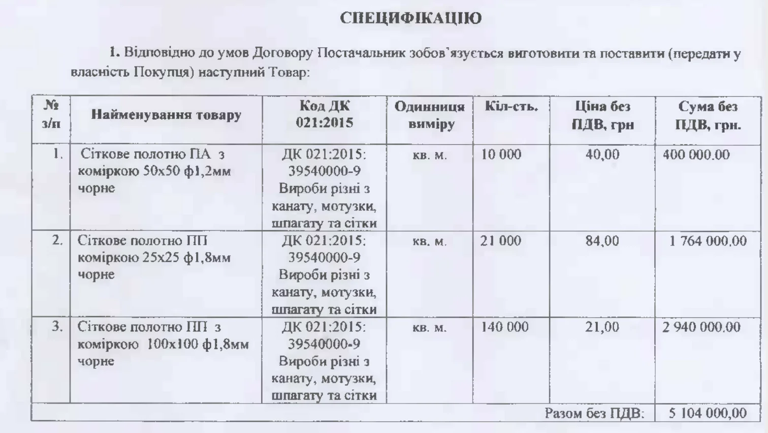Згідно з договором, який опубліковано на порталі Prozorro, департамент придбав 171 тис. м2 сіткового полотна трьох видів.