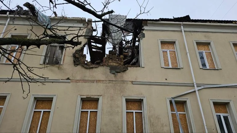 Повідомляється, що пошкоджені фасад і покрівля будівлі. Є руйнування в приміщеннях.