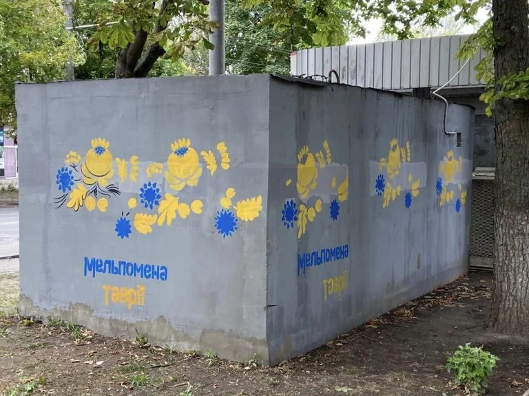 Директор Херсонського театру імені Миколи Куліша Олександр Книга з колегами долучилися до створення муралу “Мельпомена Таврії” на стіні херсонського сховища.