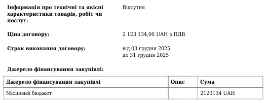 У звіті про закупівлю не вказано вартість кожної окремої одиниці товару, що є порушенням. Причини, чому ці дані не оприлюднили – невідомі.