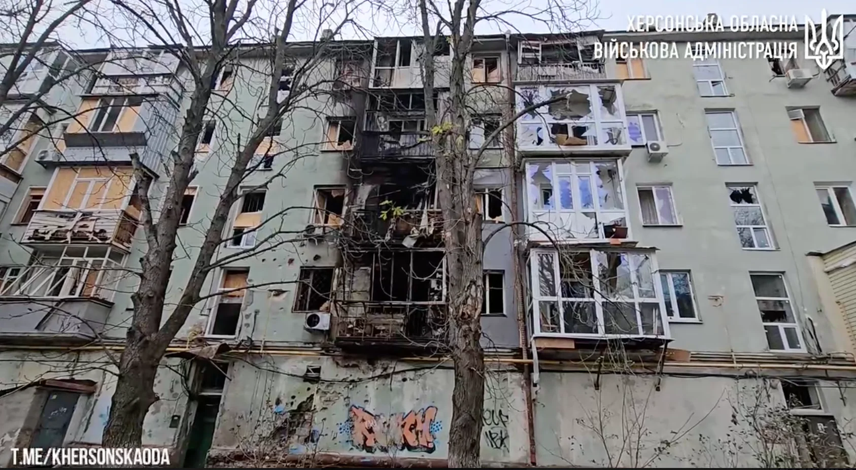 Херсонська ОВА показала, який вигляд мають житлові квартали Херсона після вчорашніх ворожих атак.
