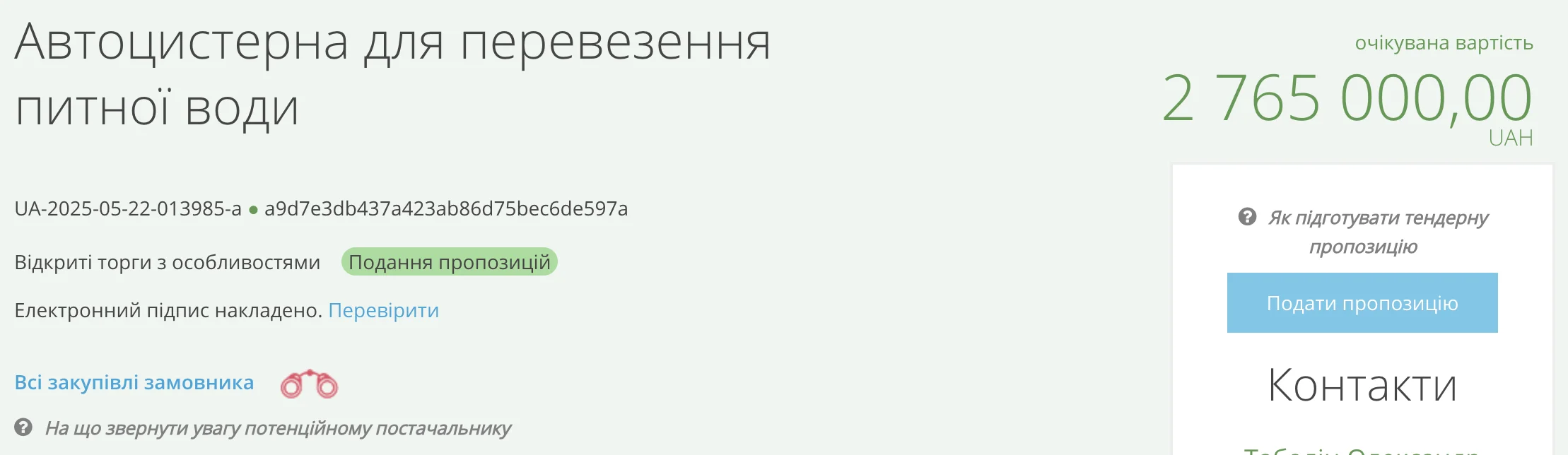 Майбутній підрядник має доставити автоцистерну замовнику до 29 серпня 2025 року.