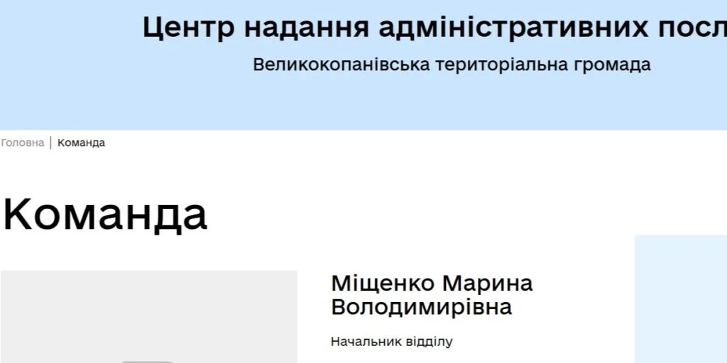 За даними офіційного сайту ЦНАПу Великих Копанів, Марина Міщенко досі є начальником Центру надання адмінпослуг.