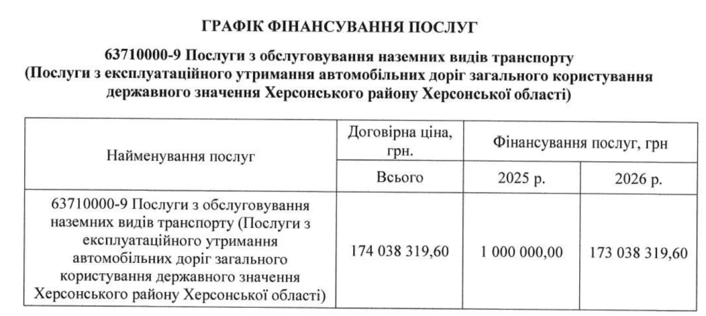 За ці гроші підрядник має обслуговувати 104 кілометри доріг у період 2025 та 2026 років.