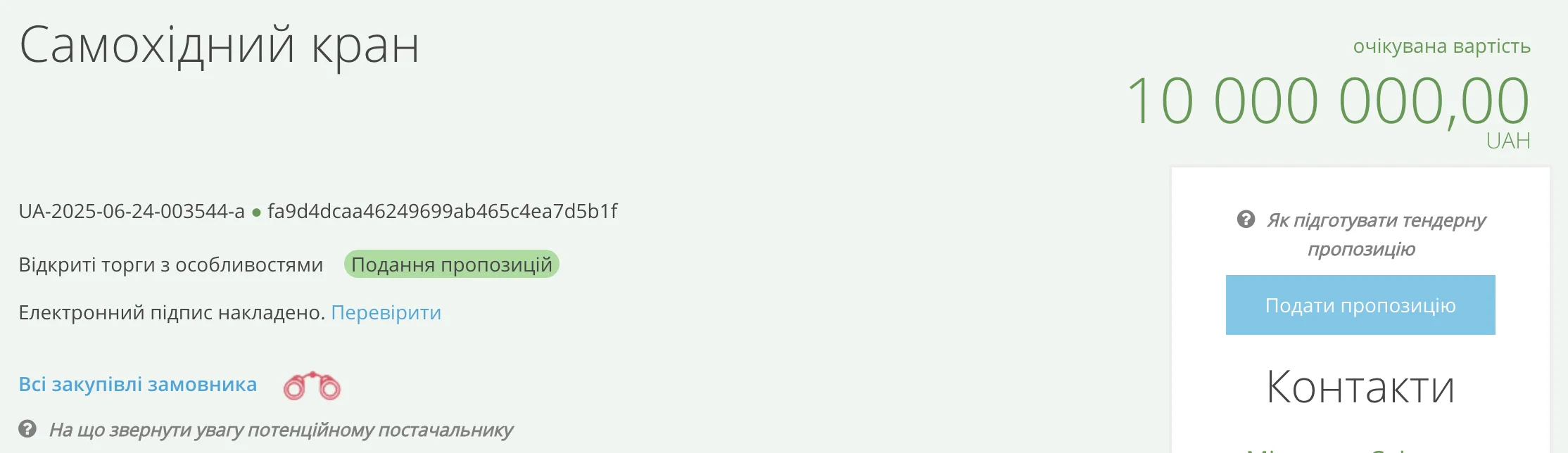 Новокаховське комунальне підприємство “Автоцентр” хоче придбати самохідний кран за 10 млн грн.