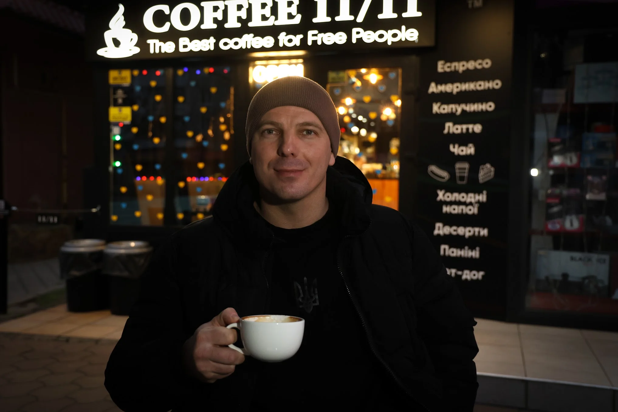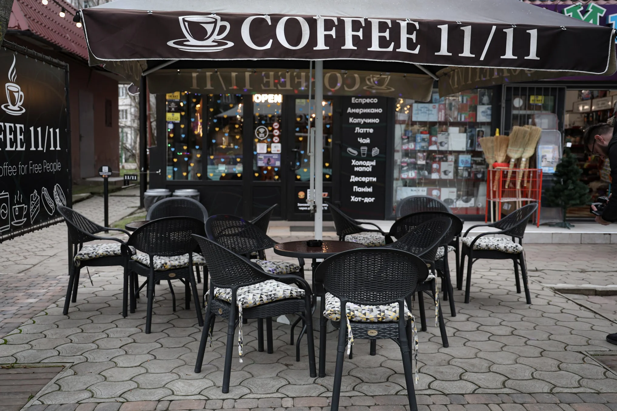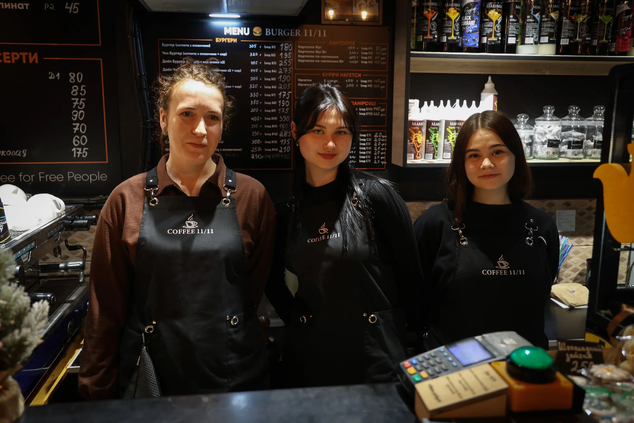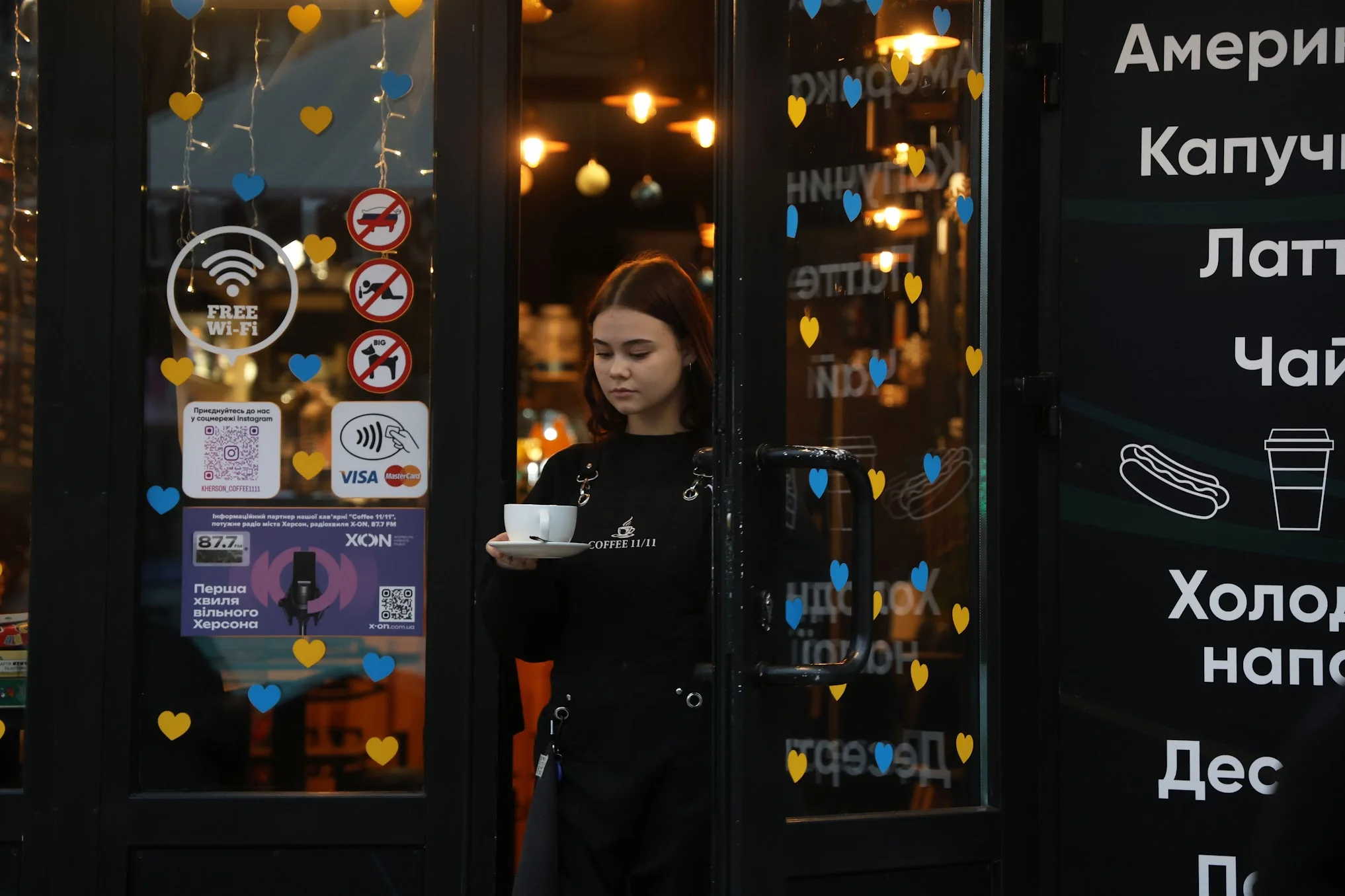 На вході до кав’ярні “11/11” — символічний напис: “Краща кава для вільних людей”. Для херсонців це не просто слова, а нагадування про свободу, яку вони відстоювали в окупації.  Заклад знає майже кожен херсонець. Сюди забігають на каву з собою, тут зустрічаються, спілкуються, пересиджують блекаути.