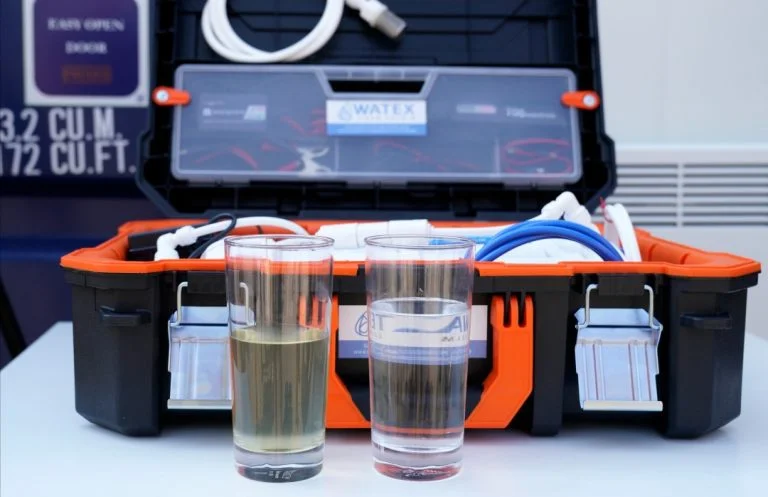 «Ця система очищення води контейнерного типу – вона мобільна, пересувна та утеплена. Усередині знаходиться система фільтрації, яка дозволяє робити забір води з будь-якої наземної водойми – ставка, озера, річки або каналу. І очищає воду до питної, – пояснює керівник компанії-виробника Watex Оскар Чодорс.
