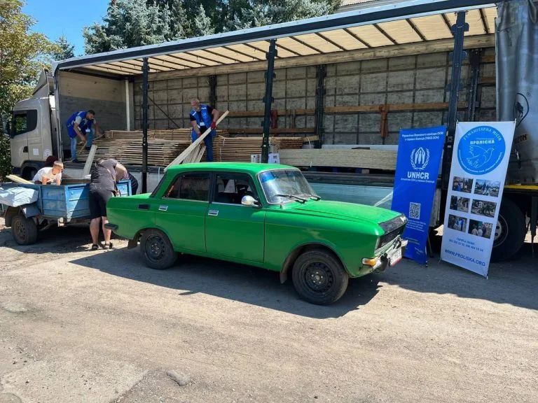 Благодійники допомагають мешканцям села відбудовувати їхнє житло. Волонтери центру «Проліска – Кривий Ріг» передали людям необхідні матеріали.