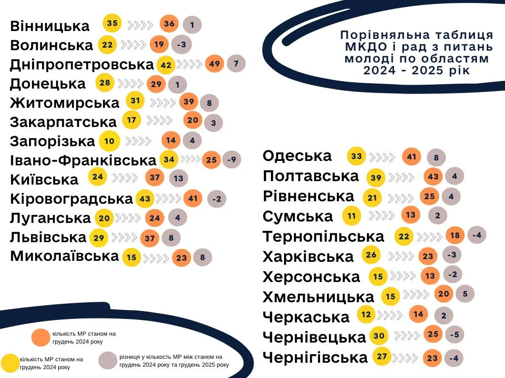 Водночас у 2024 році в області діяло 15 молодіжних рад. Таким чином, протягом року кількість таких органів зменшилася на дві.