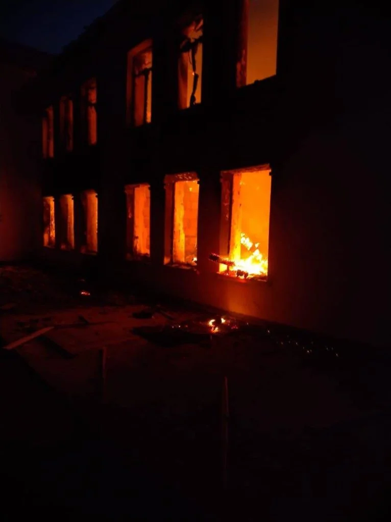Через загрозу повторних атак РФ, швидко загасити пожежу не вдалось – будівля вигоріла вщент, йдеться у повідомленні.