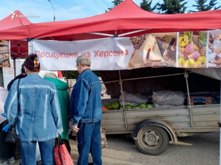 На новорічному ярмарку у тимчасово окупованому місті Севастополь в АР Крим з’явилась торгова точка з “продукцією з Херсона”.
