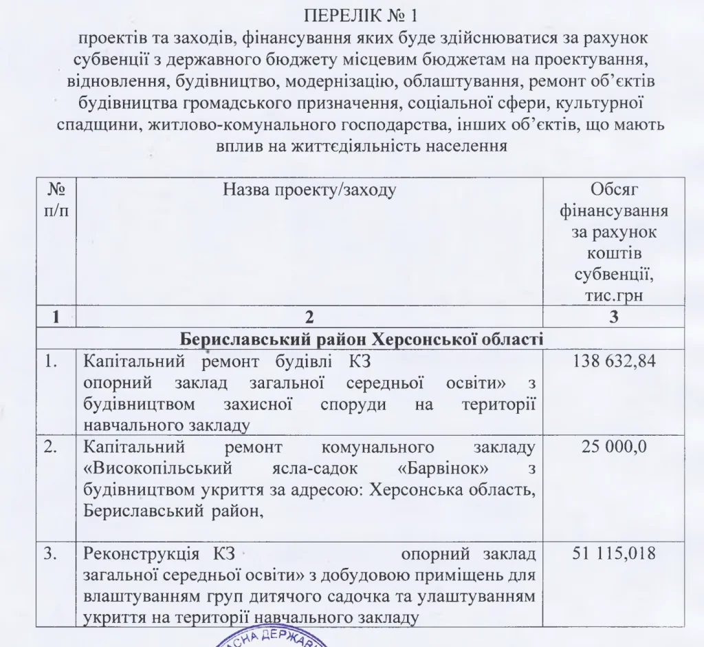 Начальник Херсонської ОВА Олександр Прокудін затвердив перелік об’єктів, які будуть відремонтовані за рахунок коштів, виділених з державного бюджету.
