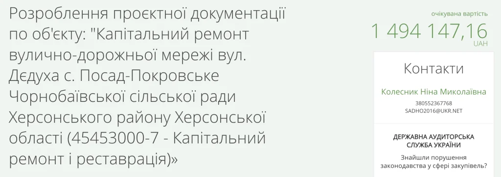 На розробку проєктної документації капітального ремонту вулично-дорожньої мережі на вулицях Херсонська та Дєдуха в селі Посад-Покровське Чорнобаївської громади виділено 2 988 837 гривень.