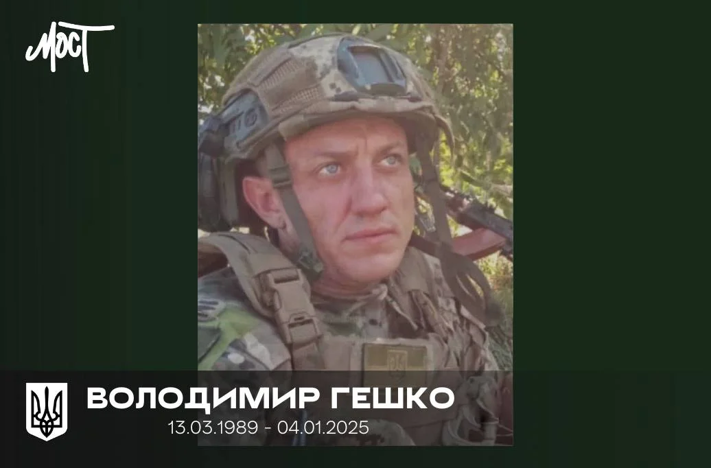 Під час виконання бойового завдання 4 січня 2025 року на Донеччині загинув стрілець-снайпер морської піхоти з Херсонської області Володимир Гешко.