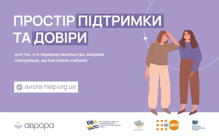 Якщо ви або ваші близькі зазнали насильства, зокрема сексуального, що пов’язане з війною, чи стали його свідками – не залишайтеся з цим досвідом сам на сам і звертайтеся по допомогу. Послуги на онлайн-платформі «Аврора» можна отримати конфіденційно й анонімно, з дотриманням професійних етичних стандартів.