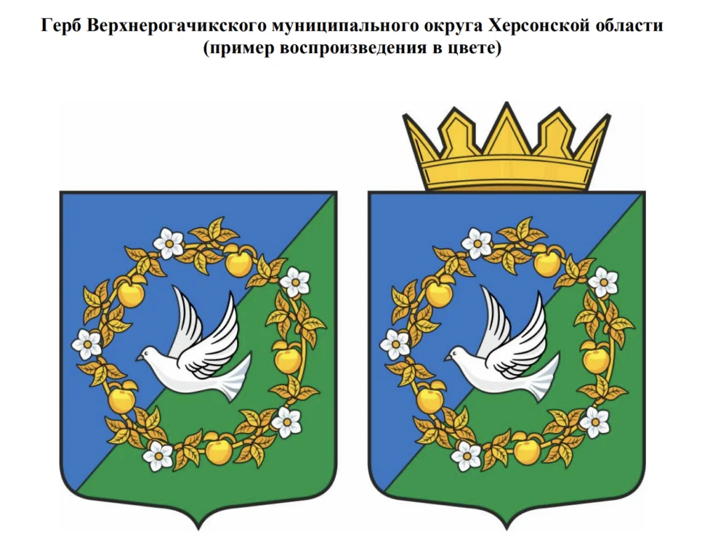 Окупаційна влада в черговий раз затвердила нові варіанти герба та прапора Верхньорогачицького муніципального округу (територіальна одиниця запроваджена окупаційною владою, – МОСТ) на лівобережжі Херсонщини.