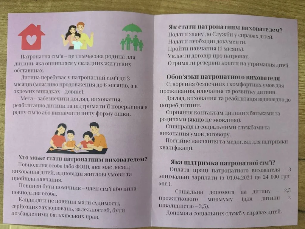 Фахівці також інформують, які документи необхідно зібрати для оформлення опіки, піклування, усиновлення чи патронату, а також висвітлюють усі нюанси та вимоги, з якими можуть зіткнутися потенційні опікуни, усиновлювачі чи патронатні вихователі.