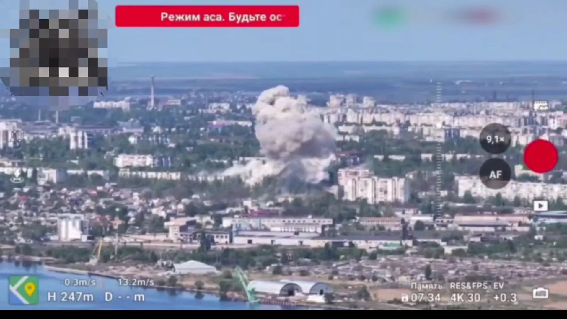 Підконтрольні російським окупантам пабліки оприлюднили відео, зняте під час бомбардування Херсона 29 квітня 2025 року.
