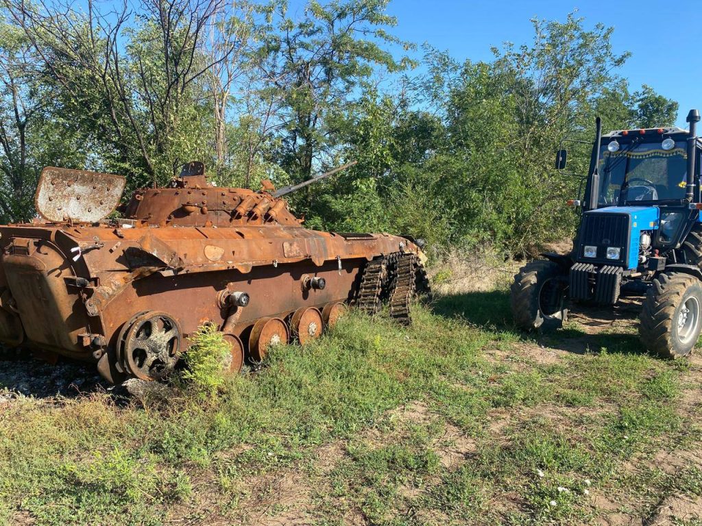 “Це не мій. Сергій з Андріївки поставив. Він на ньому вже вдруге на протипіхотну міну наїхав”, – розповідає фермер.