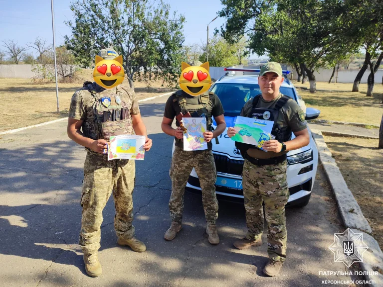 Патрульна поліція Херсонщини разом із дітками передали листи та малюнки для військових.