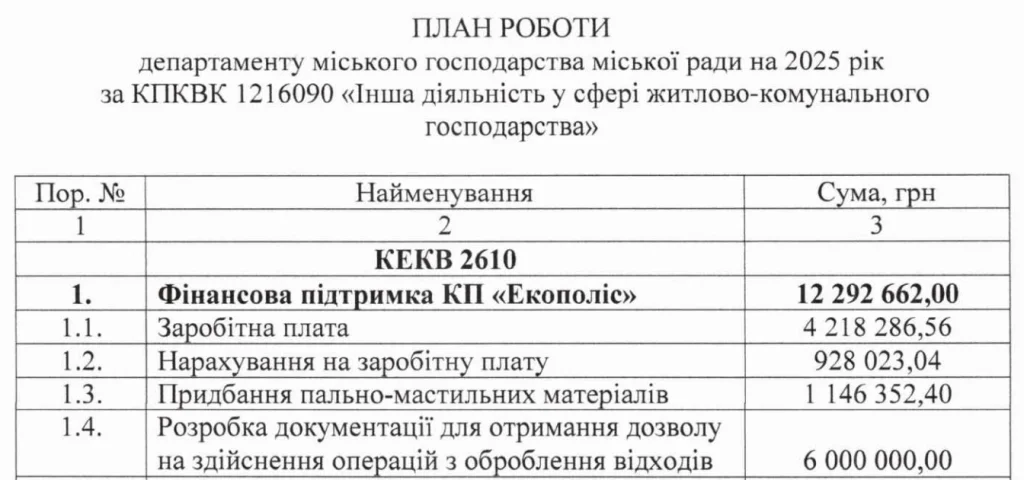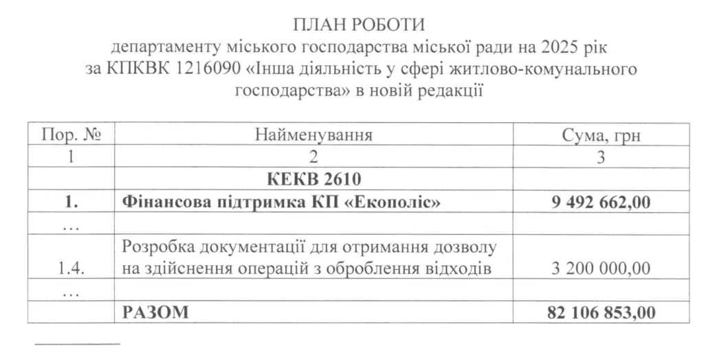 UPD: Як пояснив керівник “Екополіса” Сергій Мелашич, цим розпорядженням Роман Мрочко забрав у підприємства 2,8 млн грн, адже в минулій версії розпорядження підприємству виділяли майже 12,3 млн грн. Крім цього, на розробку документації раніше передбачалось 6 млн.