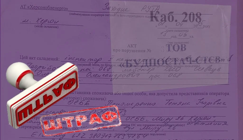 Штраф на ОСББ «Миру 26 Херсон» накладений згідно з актом № 33338, складеним 1 квітня 2025 року інспектором II категорії АТ «Херсоноблєнерго» Анатолієм Марковим. Суть порушення – «самовільне підключення електроустановок, струмоприймачів до електромережі, що не с власністю оператора систем з порушенням схеми обміну».