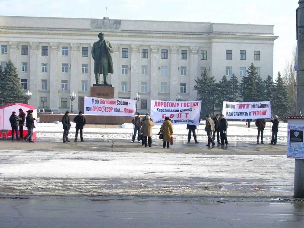 Активісти партії зустрічають Януковича у Херсоні. Лютий 2006 року. Фото: МОСТ