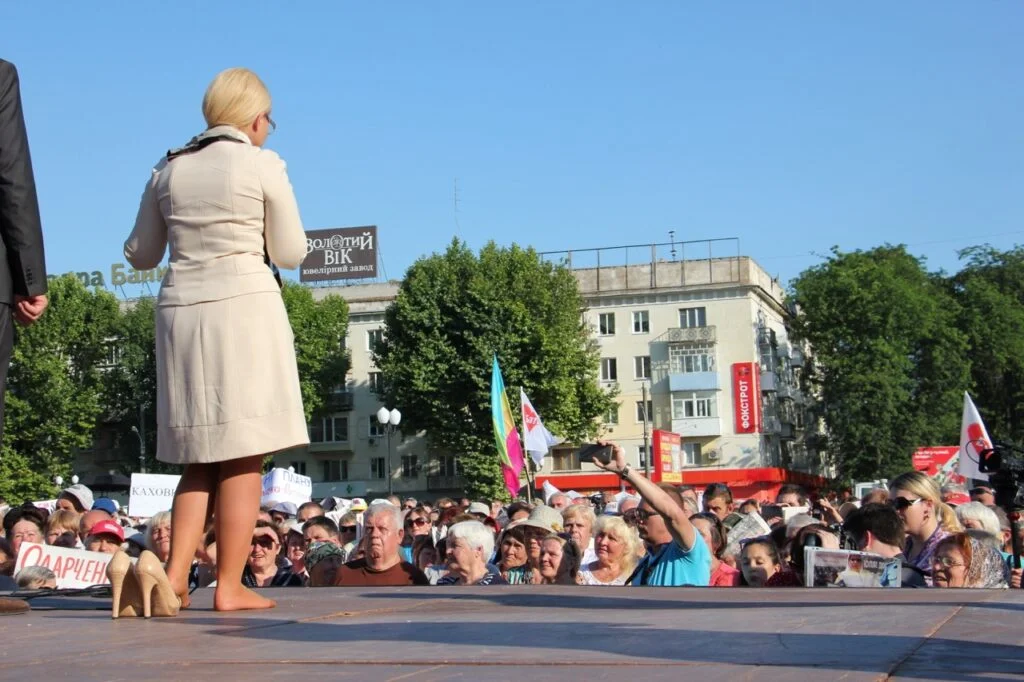 Апогеєм цієї кампанії став приїзд Юлії Тимошенко в Херсон. Перед багатотисячним натовпом Тимошенко виступала босоніж, а поряд стояли недешеві туфлі. Але це нікого не хвилювало. Натовп був у захваті від неї. Таке неможливо було імітувати.