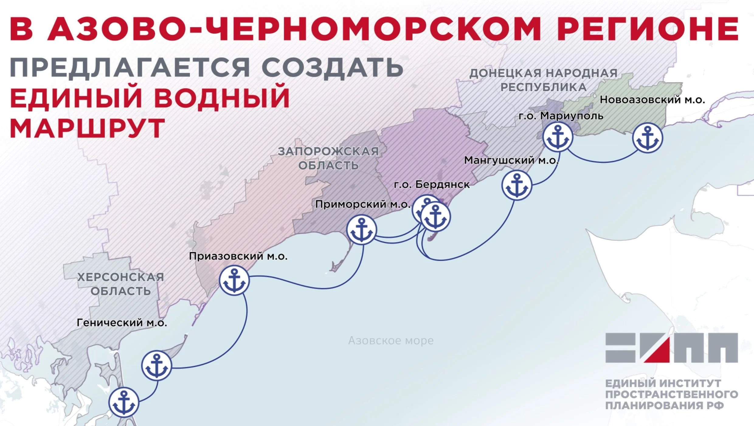 Єдиний інститут просторового планування РФ запропонував створити спільний водний маршрут, який охопить тимчасово окуповані території Донецької, Запорізької та Херсонської областей.