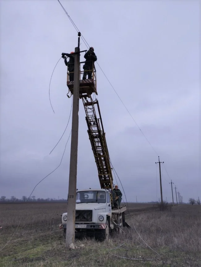 Бригада високовольтників відновлює ПЛ 35 кВ протяжністю близько 12 км у Нововоронцовському районі, електромонтери з Дубна та Млинова відновлюють мережі 0,4-10 кВ та повертають електропостачання до чотирьох сіл Бериславського району.