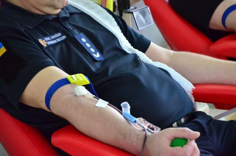 Співробітники ДСНС України у Херсонській області долучилися до здачі донорської крові для постраждалих від масового обстрілу, який відбувся 3 травня.