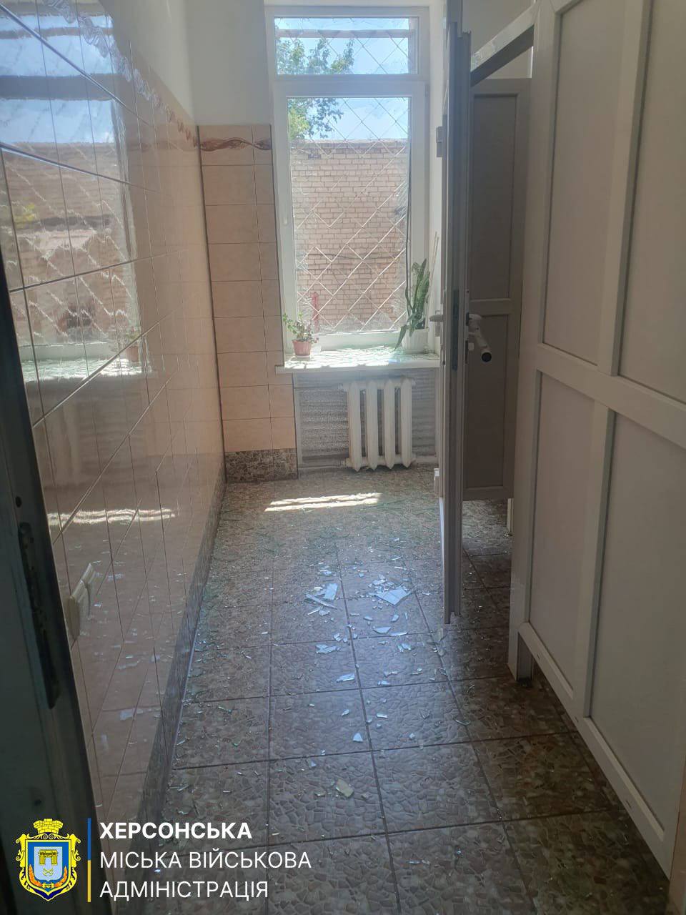 Унаслідок російського обстрілу центральної частини Херсона близько опівдні пошкоджено адмінбудівлю.